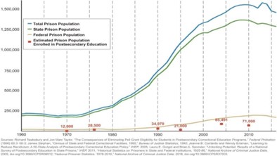 Figure 1. Graph showing the gap between the total prison population and total prison population enrolled in postsecondary education.